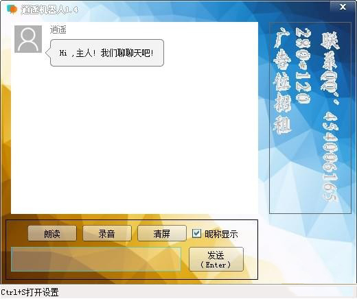操作简单,软件使用很简单,打开后,直接输入你想说的话,然后发送,就可以收到回复了。