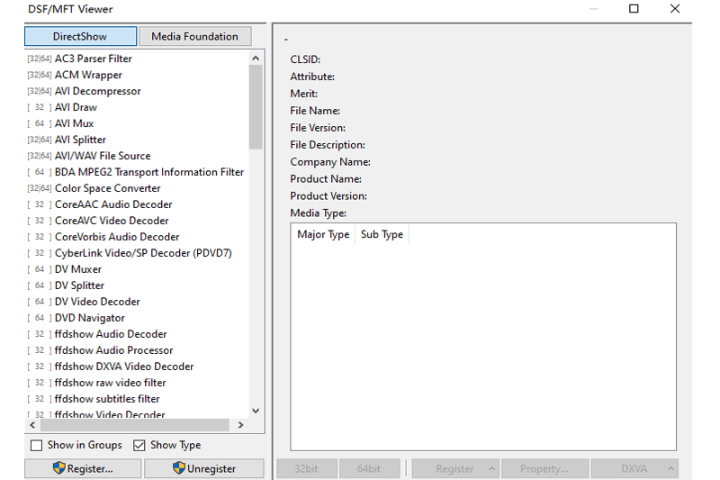 可以在PC上检测并显示所有DirectShow和Media Foundation编解码器的列表,查看与每个编解码器相关的详细信息,例如属性,优点,文件名,产品和公司。此外,您可以轻松注册这些项目,重新注册或取消注册。