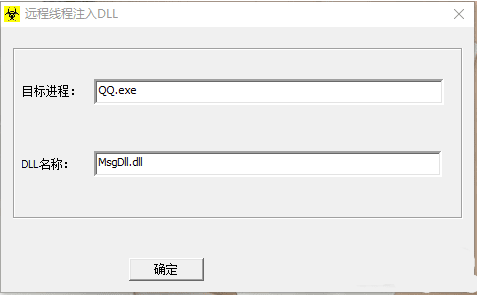 待注入的DLL要和本注入工具在同一目录下,且还得在被注入程序的目录下(复制一份即可)。
