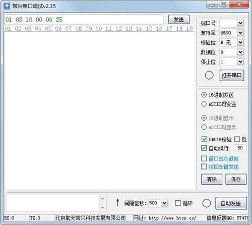 软件可以进行多功能串口调试,可以允许用户设置包括端口参数、发送周期、支持crc16校验等等。自动记录上次操作参数,如串口号等。