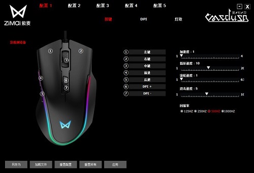 拥有7个按键(包括滚轮),贴心支持了宏编程,只需要打开鼠标驱动软件,就可以自定义设置各种按键功能和RGB灯效,对于游戏党来说,简直是一项不错的服务。