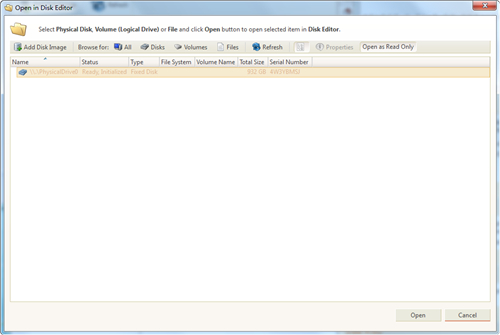 打开RAW图像创建由Active @取消删除或其他Active @产品,并与磁盘编辑器进行调查。