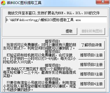 蝌蚪IOC图标提取工具是一款专业的应用程序图标提取的工具软件。使用者可以使用软件对想要的应用程序图标进行提取。软件界面布局都很直观,所以使用方法也非常简单,只需将想要的图标对应的应用程序所在的文件位置输入输入框,然后点击提取即可完成操作。