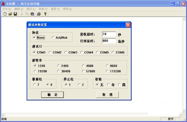南方全站仪传输软件是一款专业的数据传输的工具软件。软件可以帮助使用者在全站仪与计算机之间传输数据。支持自定义传输延迟。软件的使用方法也很简单,选择好传输协议、通讯口、波特率、数据位、停止位等等选项后点击确定即可。
