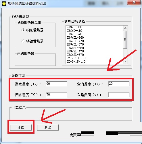 下载散热器选型计算软件是一款专业的散热器数量的计算工具软件。使用者可以通过软件来计算需要的散热器数量,软件的使用方法也很简单,选择散热器类型和型号,将采暖工况的数字输入,最后点击计算即可获得需要的散热器数量,非常方便和快捷。