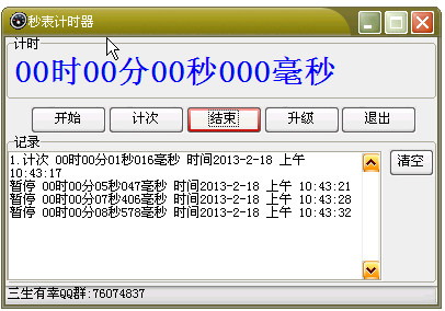 更快捷的操作方式:双击窗体空白处开始/停止,双击时间标签暂停/继续。