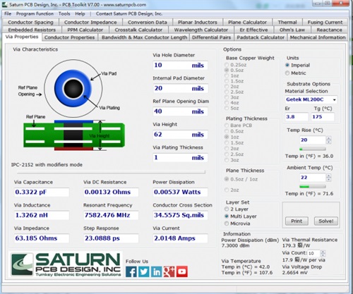 下载Saturn PCB Toolkit是一款专业的PCB参数计算的工具软件。软件可以帮助使用者计算平面印刷电路板电感器的电感、热电阻、嵌入式电阻、串扰、有效介电常数等数据。软件的功能很丰富,适合从事相关行业的从业人员们进行使用。