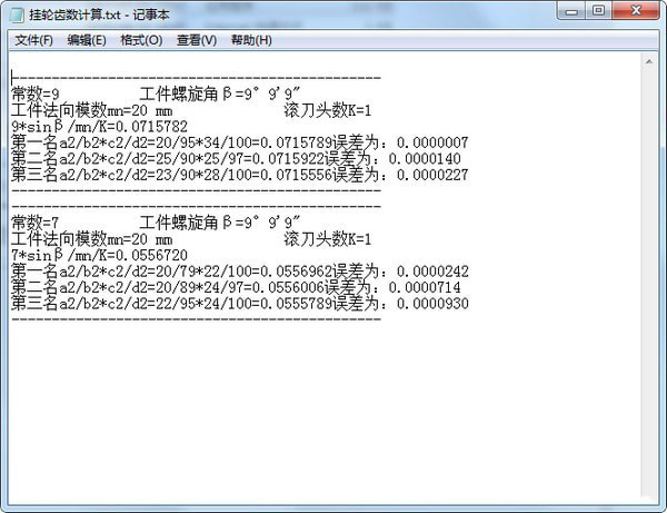 文件“挂轮库.txt”是可以修改的。可以根据具体情况,修改挂轮总数和各个挂轮的齿数。挂轮齿数要按照齿数的多少,从小到大排列。