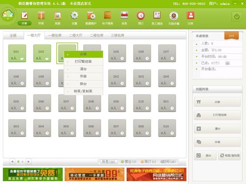 我们还开发“手机餐厅”功能,您在棉花糖餐饮管理系统中的“电子商务”功能中,可以选择开通“手机餐厅”,之后网友就可以通过手机餐厅来进行手机预订、手机点单、甚至在线支付等功能,成为您餐厅开展电子商务的有力工具。