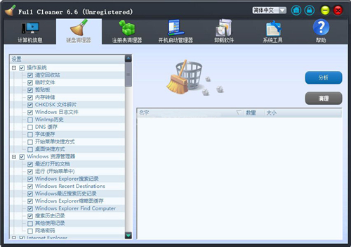 电脑完全清洁软件Full Cleaner是一款中文版的清理软件,十分强大,可以和Cccleaner相媲美软件,充分的清洁是我们的系统优化,隐私和清洁工具。它从系统中删除无用的文件允许Windows运行更快,腾出宝贵的硬盘空间。它也可以清理你的网上活动,如您的互联网历史的痕迹。此外,它包含一个全功能的注册表清洁。但最好的部分是它的速度。