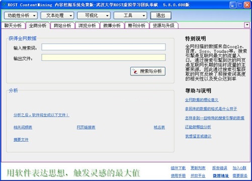 下载rost反论文剽窃检测系统是一款专业的论文检测的工具软件。使用者可以通过软件去检测自己的论文的查重率,防止抄袭者通过各种修改方法来抄袭论文。软件支持聊天分析、网站分析、微博分析等其它功能,为使用者反论文剽窃提供辅助。