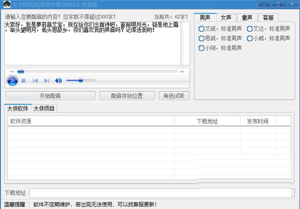 免费配音软件通常提供多种语言和语音风格选项。这样,用户就可以根据自己的具体需求选择合适的配音效果,满足不同场景的需要。有些免费配音软件还具有字幕对轴、文本提取和人声分离等特殊功能,可以帮助用户更好地处理和优化配音内容。下面就为大家推荐一些免费配音神器。