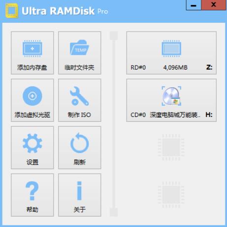 UltraRAMDisk是一款专业的虚拟光驱存储的管理工具软件。使用者可以通过软件添加内存盘、创建临时文件夹、添加虚拟光驱、制作ISO等功能。支持备份和恢复内存盘与虚拟光驱中的数据内容。软件界面的功能布局很直观,软件的体积小巧,是一款很实用的工具。