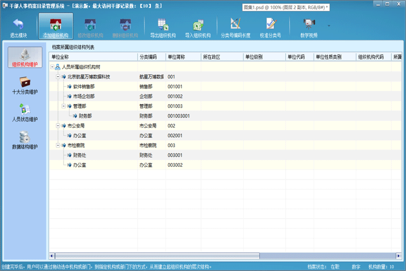 下载干部人事档案目录管理系统是一款专业的人事管理的工具软件。软件可以帮助使用者管理人事变动和员工资料管理,软件支持档案十大分类的动态维护等功能保护资料安全。软件可以有效帮助人事提高管理的效率,十分的方便快捷。