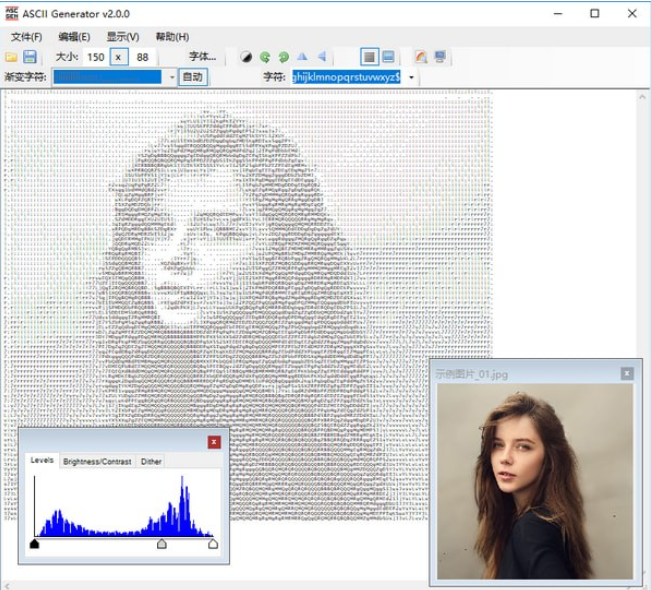 支持手动调整ASCII码密度水平,图片亮度、对比度和抖动程度