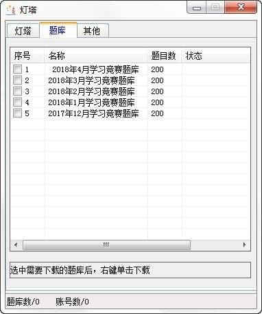 使用前请先在题库中选中本月题库,然后右键下载,下载完成后程序自动重启,导入账号即可