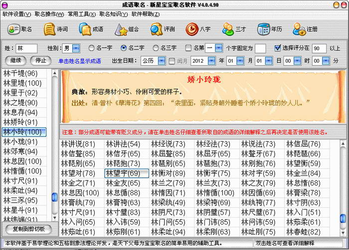 支持成语模式取名,比如“林妙可”,便取自成语“妙不可言”。