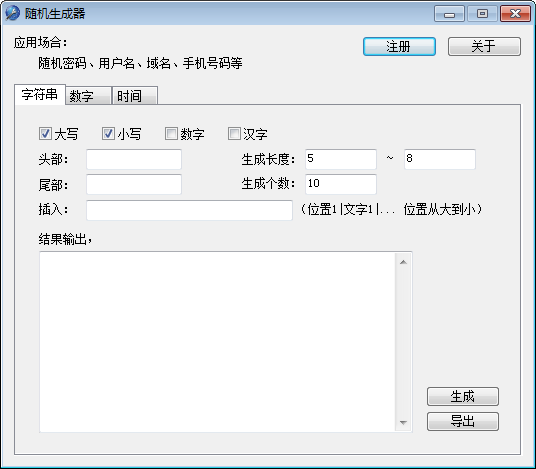 输入生成字符串的开头或者结尾,设置好生成字符串的长度。