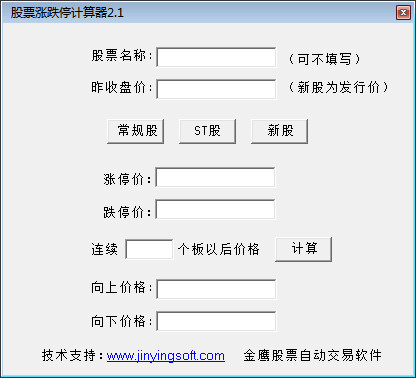 股票涨跌停计算器是一款专业的股票的涨跌停计算工具软件。使用者可以通过软件老计算股票大致向上或向下的价格。软件的使用方法也非常简单,将股票名称、昨日收盘价、涨停和跌停等数据进行输入,选择股票类型,最后点击计算即可获取结果。