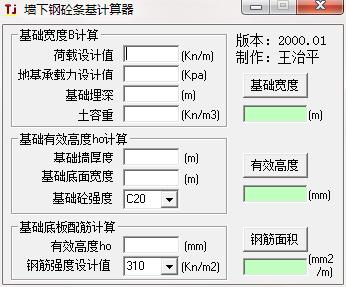 只要知道墙下钢筋砼条基计算器官方版输入的基本参数有:荷载设计值,地基承载力设计值,基础埋深,土容重,就能确定出基础宽度;