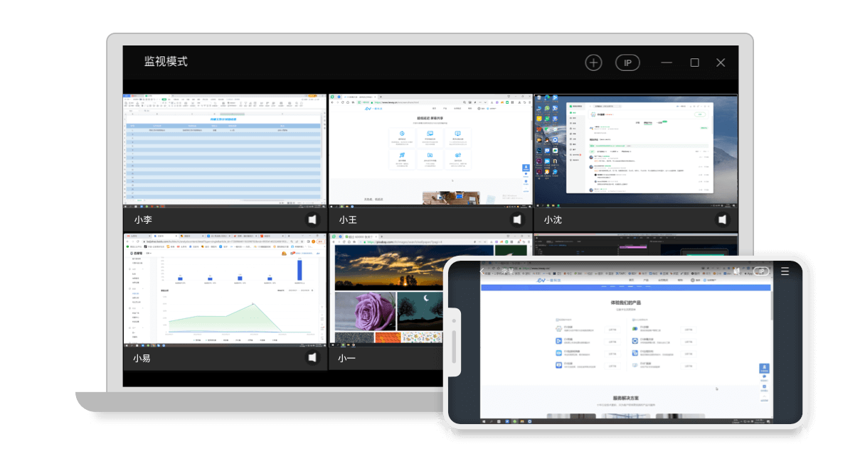 4、可监控局域网内多台电脑设备:适用电子考场、生产车间,支持手机、平板和windows电脑查看监控。