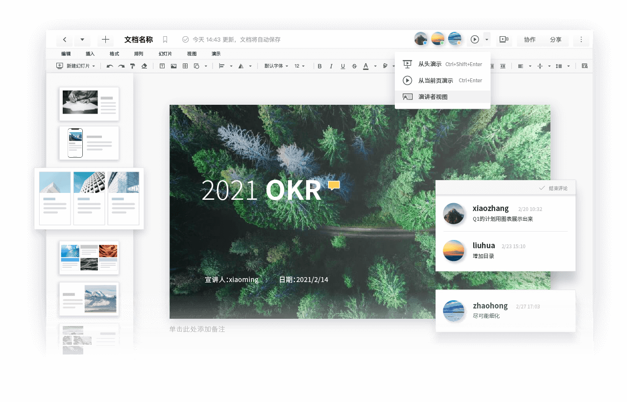 多人多端同步协作编辑,支持任意位置标注评论,自动保存历史版本,支持回溯