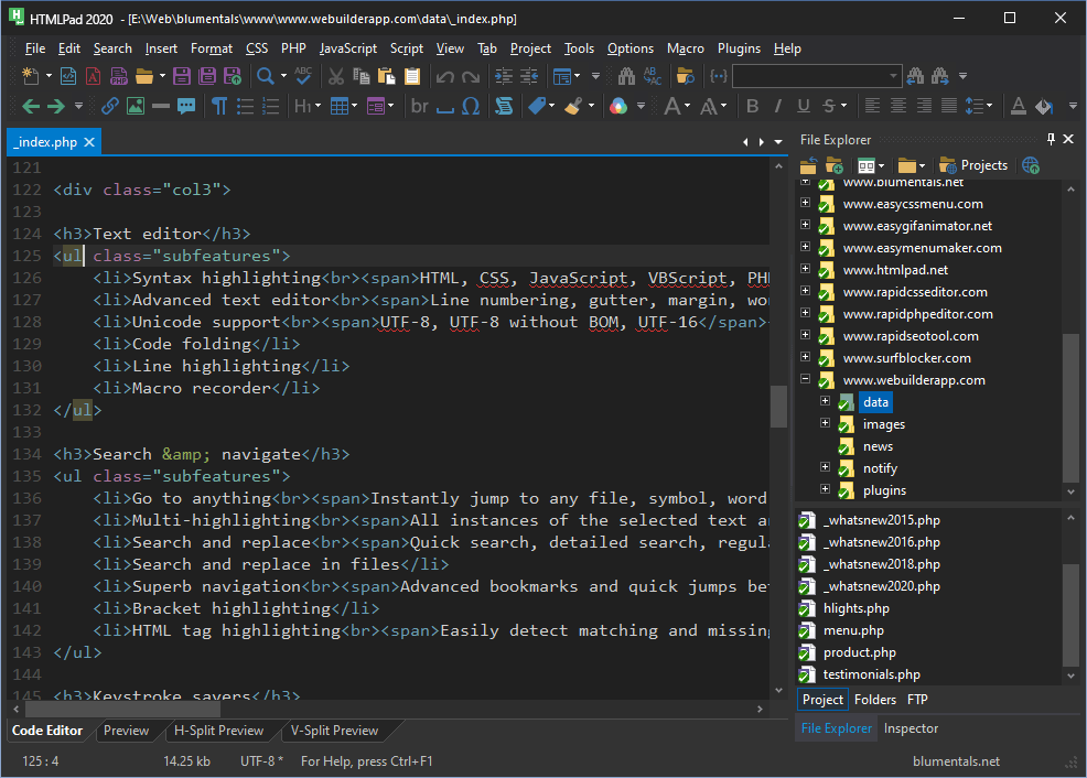 快速、易于使用、功能强大的 HTML、XHTML、CSS 和脚本编辑器HTMLPad 是复杂的多合一 HTML、CSS、JavaScript 甚至服务器端脚本编辑器。简洁方便的界面、快速启动、真正的灵活性和强大的功能使您能够比以往更快、更轻松地创建和编辑 HTML、CSS、JavaScript、PHP 和 ASP 代码!