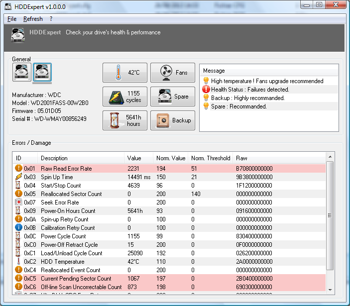 HDDExpert 让您对硬盘的运行状况和性能有清晰的了解,并将 S.M.A.R.T. 属性转换为可读的指示。
