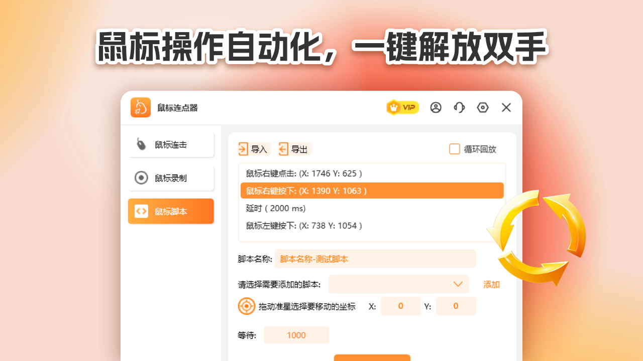 鼠标连点器是一款可以连点鼠标的鼠标连点器软件,软件功能更丰富、操作更便捷,支持鼠标连点,鼠标脚本录制回放,鼠标自定义脚本,脚本播放等功能,帮助您实现办公自动化,让您在玩游戏、网购抢购的时候全自动点击鼠标,提高点击效率,减少体力消耗,有需求的小伙伴快来下载使用吧!