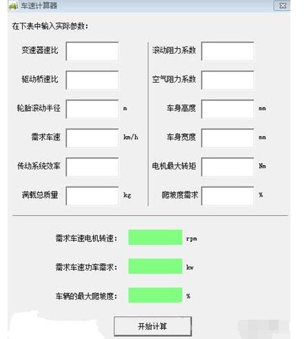 2、输入实际参数,计算电机速度、功率需求等。