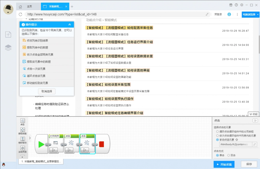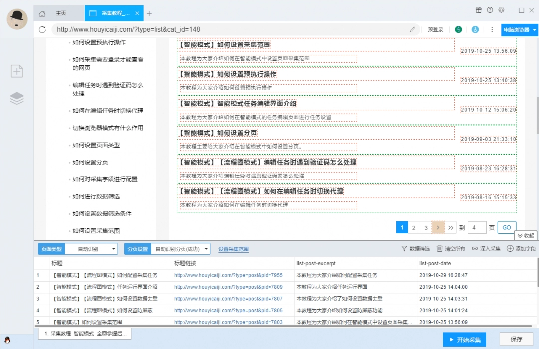 在智能模式下,后羿采集器默认会根据列表类型进行识别。如果输入单页类型,将会出现识别错误。或者其他原因,即使是列表型的网页,在智能识别上也有所偏向(我们会一直优化智能识别功能)。此时,您可以手动选择页面类型并设置分页,从而帮助软件识别正确的结果。