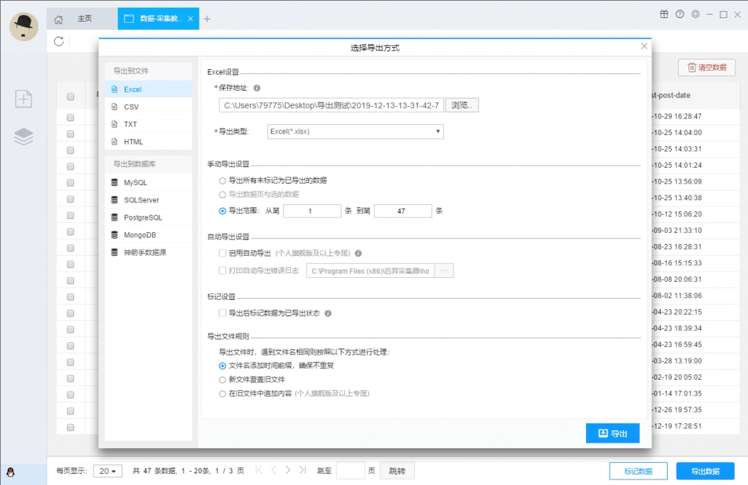 如果不使用自动入库功能,需要手工导出收款结果。完成以上设置后,我们就可以开始采集任务了。在设置任务的过程中,采集任务会自动保存。收集任务完成后,用户可以查看收集结果并导出数据。后羿采集器对采集结果的导出没有任何限制,不需要积分,完全免费,你可以放心使用。