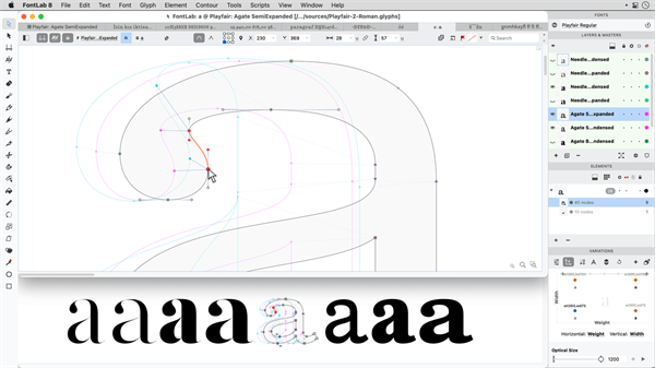 使用FontAudit查找并修复大纲问题。自动清理和优化轮廓图,平衡线段和修改曲线张力,协调G2曲率,创建和删除重叠路径,以及无损应用。