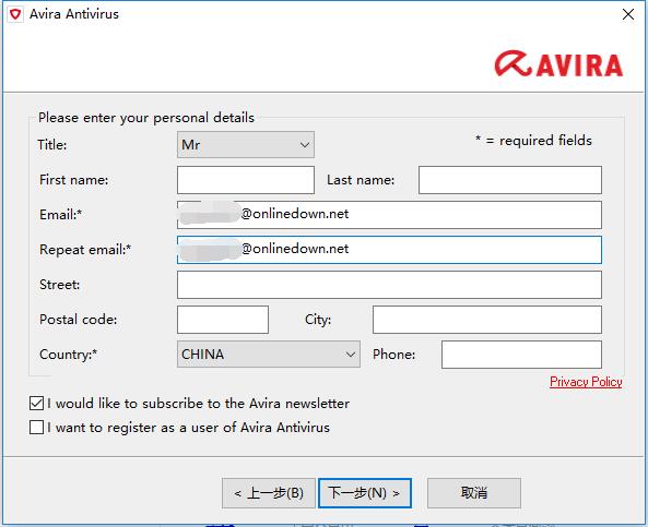 5、输入相关个人信息,只有邮箱是必填项,然后点击下一步。