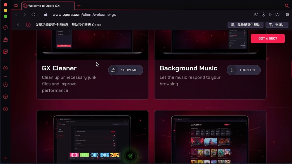 该界面结合了精细和高质量的功能,并将强大的功能与现代风格相结合。Opera给你真正探索网络的自由。