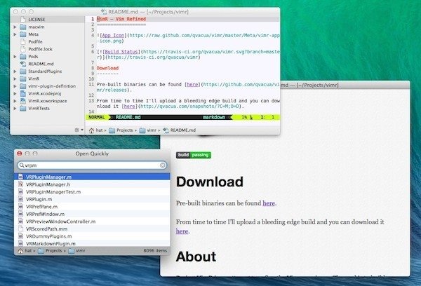 VimR的界面也十分友好,左侧是树型的导航目录,右侧是多标签页式的编辑框,下方还有一个小的地址栏,无论是跳转还是选择文件上都十分方便。