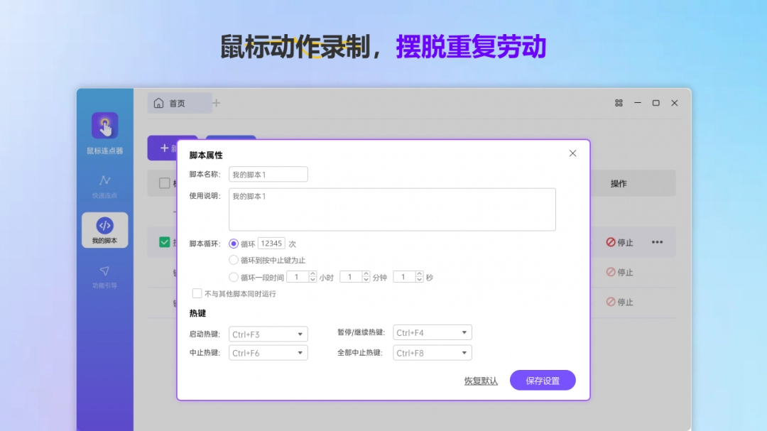 自动记录和回放鼠标动作,节省重复操作时间,帮助用户轻松处理繁琐的任务。