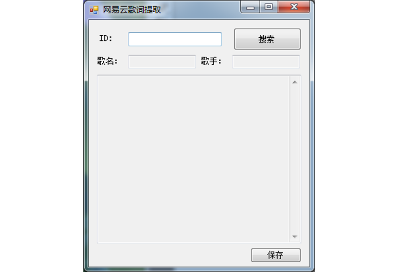 2、打开【网易云歌词提取器免费版】将id="数字"内的数字粘贴到【ID:】输入框点击【搜索】[Ctrl + V]。