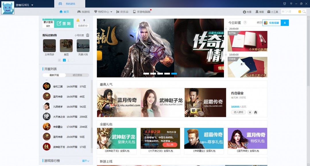 全面支持迅雷牛X页游,精选最热门的游戏,登录盒子,一键点击,即可畅玩任意一款!