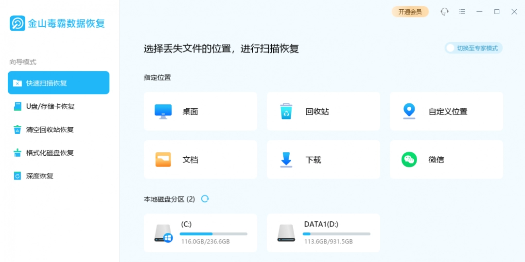 1、意外删除文件的恢复:支持意外删除文件的恢复,如清空垃圾站中的文件和完全删除文件。这为用户提供了极大的便利,即使重要文件被意外删除,也可以通过金山毒霸数据恢复轻松找回。