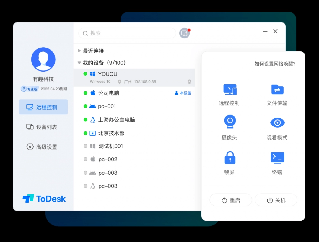 ToDesk是一款非常实用的远程控制软件,软件功能强大,使用起来也非常的流畅,支持文件传输、远程开机、手机投屏、远程摄像等功能,可以轻松实现远程控制、文件传输等一系列操作,提升工作生活的效率,为远程客户提供技术支援,大大提高了工作效率,感兴趣的朋友快来下载使用吧!