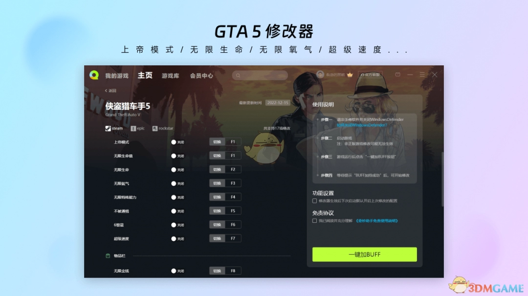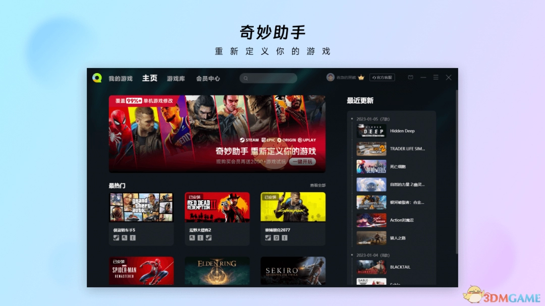 奇妙助手是一款非常实用的游戏修改器合集,软件一键修改、操作便捷、功能全面,支持2000多款单机游戏,包括了GTA5、荒野大镖客、艾尔登法环、泰拉瑞亚、赛博朋克2077、只狼:影逝二度、NBA2K23、巫师3:狂猎、漫威蜘蛛侠:复刻版、禁闭求生等上千款热门单机游戏,大大提高游戏体验,感兴趣的小伙伴赶快下载使用吧!