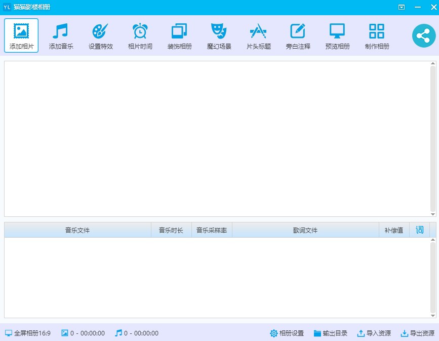 猫猫影楼相册是一款非常实用的相册制作软件,软件界面简洁,操作简单易用,支持批量添加图片,对图片排序,移除等操作,支持jpg、bmp格式图片,提供了添加相片、添加音乐、设置忒下、设计相片时间、装饰相册、魔幻场景、片头标题、旁白注释等等在内的多种功能,欢迎有需要的小伙伴赶快来下载体验吧!