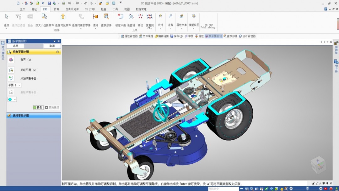 软件功能丰富,涵盖了工业设计的各个领域。功能模块包括:机械制图、机构设计、零件设计、索/约束设计、装配、工程制图、钣金、管道、参数化设计等。