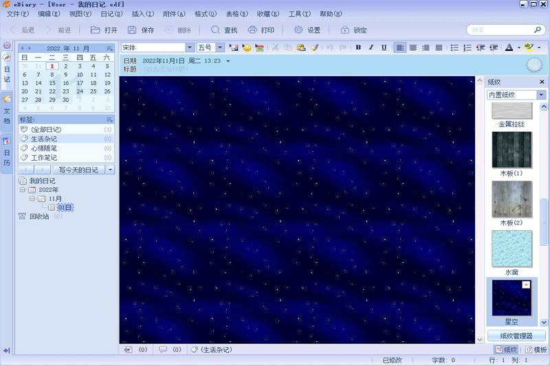 EDiary是一款专业的日记或文档编辑的软件工具,软件需要注册用户才能使用,很好的保护个人的隐私,软件支持文档编辑、打印及打印预览等等功能。十分方便快捷,界面简约,布局直观清晰,操作简单,极易上手,是一款不可多得的利器,我们在日常生活中都能使用到,对该软件感兴趣的用户千万不要错过!