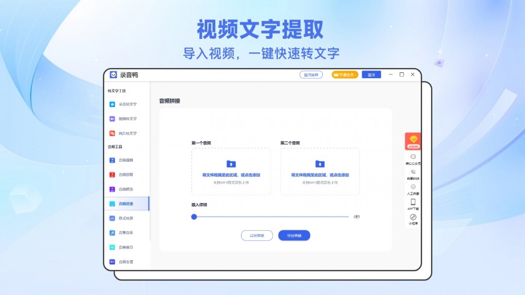 支持视频生成文本、视频提取文本导出、视频转音频文件等。