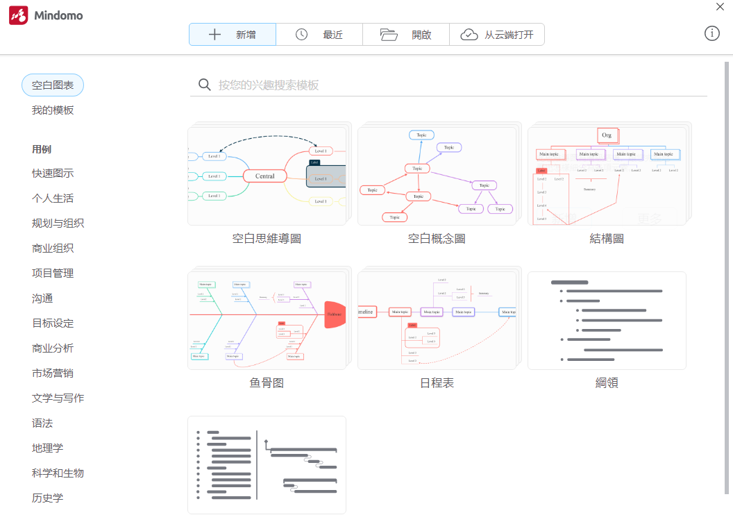 Mindomo是一款非常专业的思维导图工具,软件界面简洁,操作简单易用,拥有丰富的模板、支持向导功能、支持mom、mmap、mm、mind、xmind、xml、txt、opml等多种格式,可以轻松创建任务思维导图、空白概念图、树状结构图、网络图、结构图等等,感兴趣的小伙伴赶快下载使用吧!