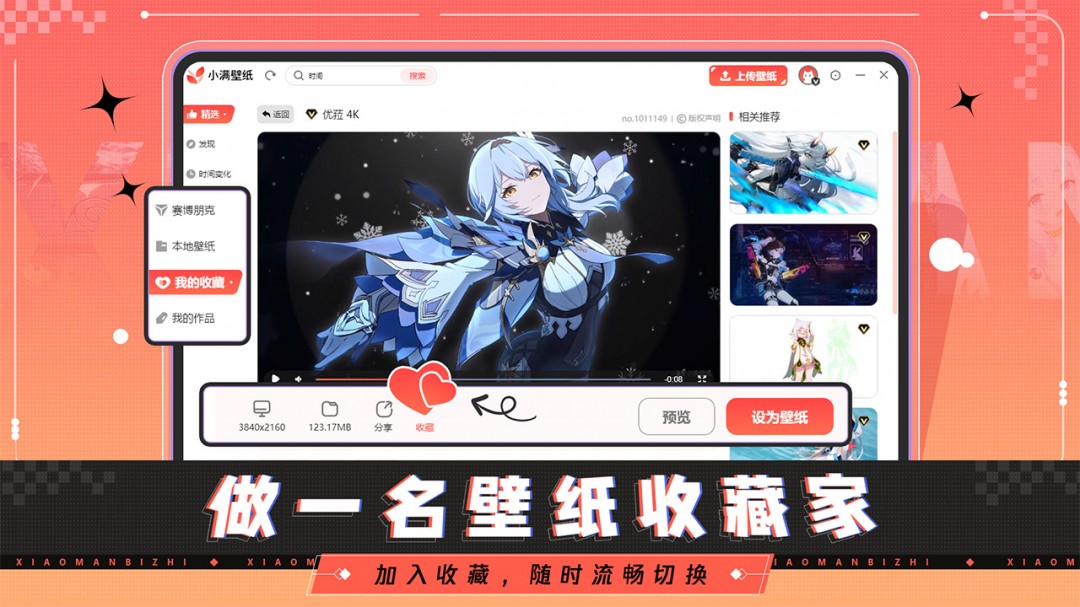 小满壁纸官方正版是一款非常实用的电脑动态壁纸软件,软件壁纸分类十分丰富,海量动静态壁纸持续更新,内有动态锁屏、视频来电秀、DIY自制壁纸和动态模板等多种玩法,还拥有风景、动物、游戏、动漫、科幻等壁纸,满足电脑用户不同壁纸类型需求,有喜欢的朋友快来下载体验吧!