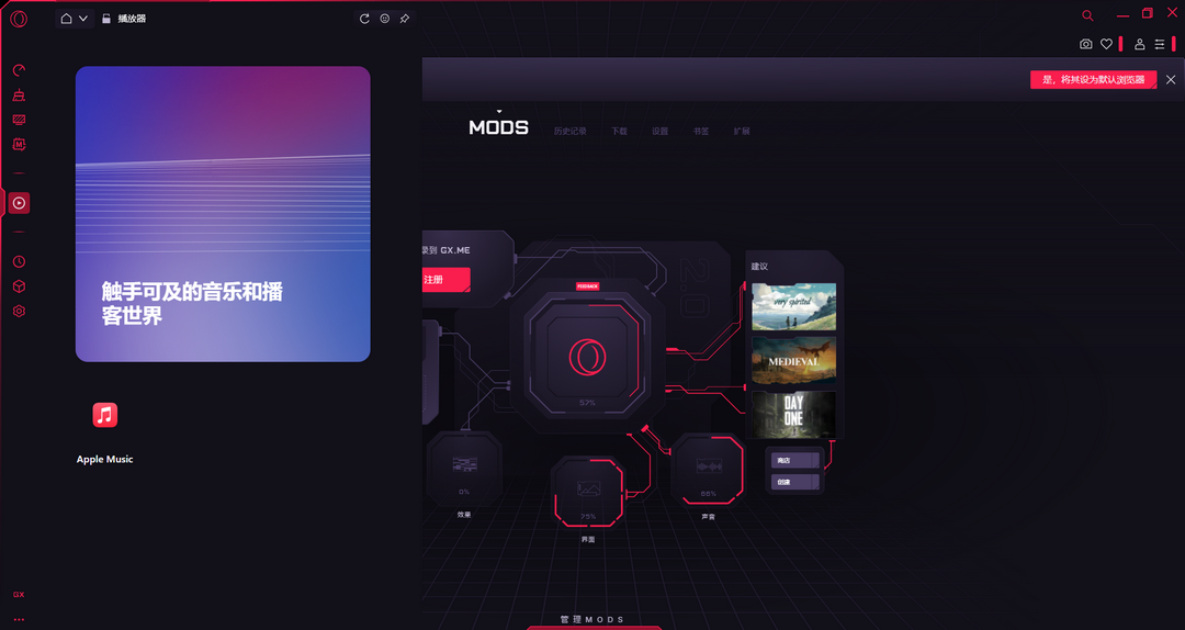 将你的浏览器与系统、心情或你正在玩的内容完美匹配,尽在 Opera GX。