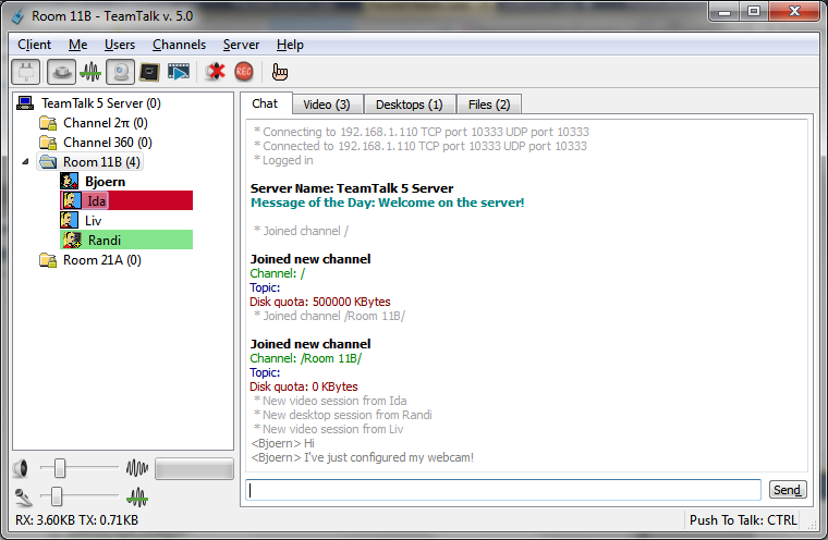 TeamTalk允许在因特网或局域网内的用户进行语音交流,你所需要的只是麦克和声卡。与其它因特网语音通讯软件不同,TeamTalk对参与会话的人数没有限制(这取决于你的带宽),语音延迟极小,因此能获得较好的沟通效果,这是一款很不错的软件,对该软件中文版有需求的小伙伴快来下载体验吧!